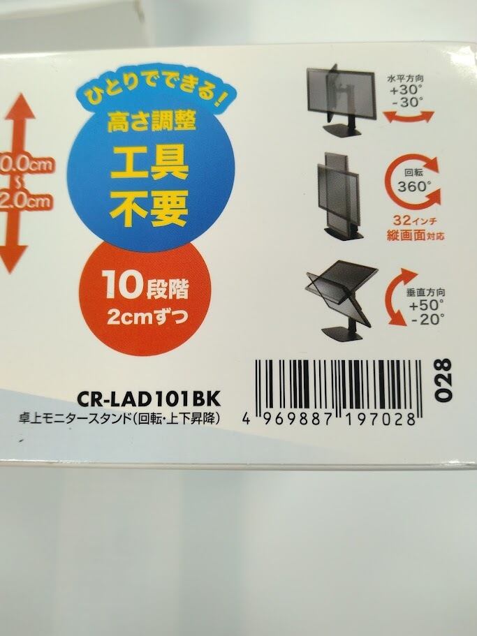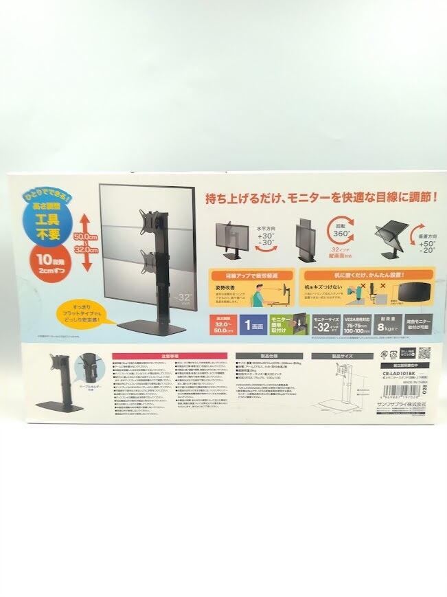 サンワサプライ(Sanwa Supply) 卓上モニタースタンド(回転・上下商工) CR-LAD101BK 10段階高さ調整・回転・対応32インチ・耐荷重8kg