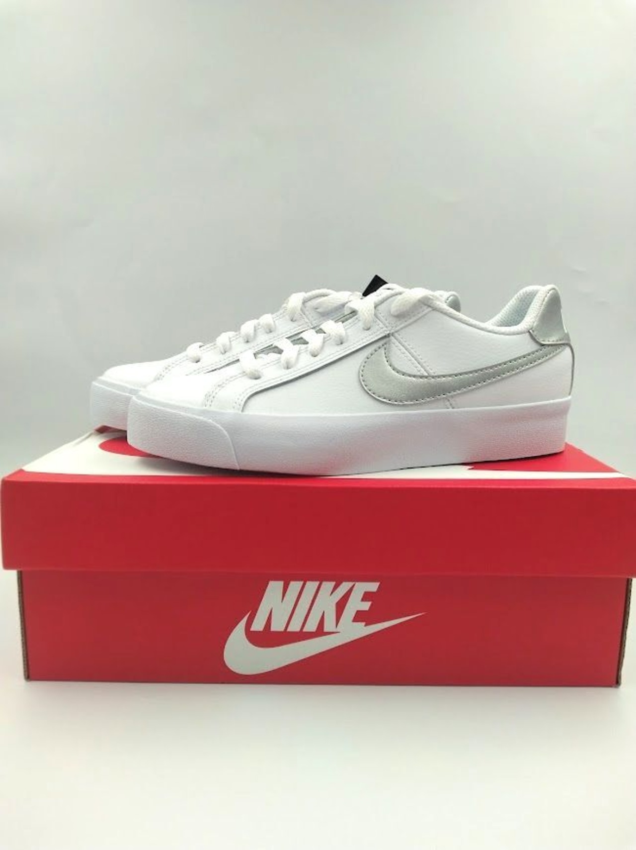 ナイキ Nike コート ロイヤル AC AO2810-114 22.5cm ホワイト/メタリックシルバー