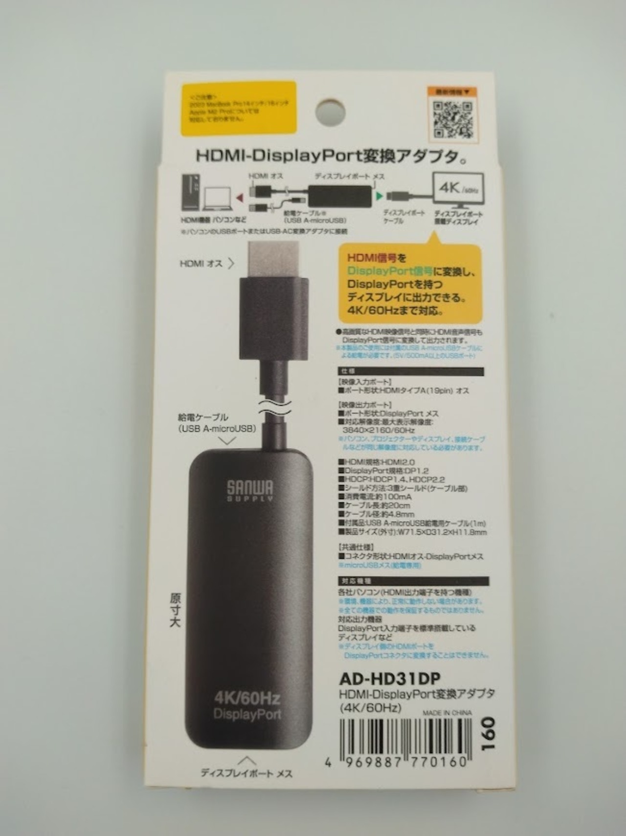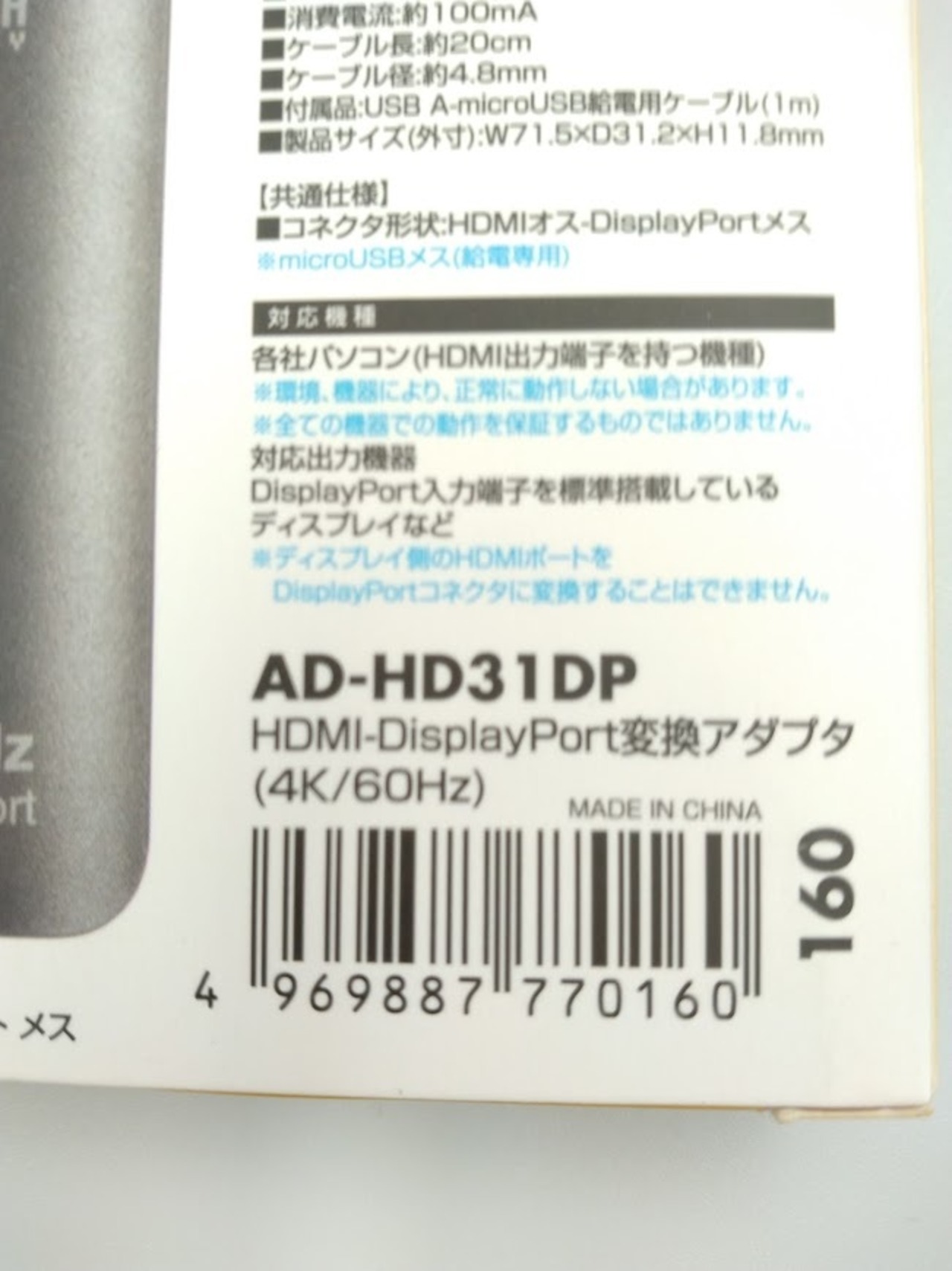 #HDMI-DisplayPort変換アダプタ(4K/60Hz)